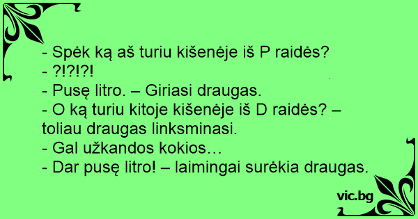 - Dar pusę litro! – laimingai surėkia draugas.