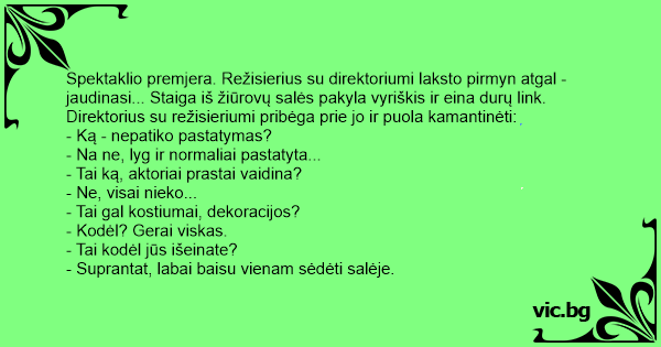 Spektaklio premjera. Režisierius su direktoriumi laksto pirmyn atgal - jaudinasi... Staiga iš žiūrovų salės pakyla vyriškis ir eina durų link. Direktorius su režisieriumi pribėga prie jo ir puola kamantinėti: