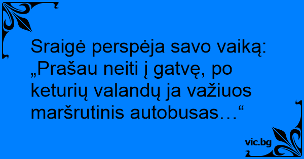 Sraigė perspėja savo vaiką: „Prašau neiti į gatvę, po keturių valandų ja važiuos maršrutinis autobusas…“