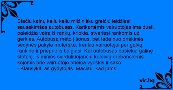 - Ne, nereikia. Suprantate, ta boba už manęs - mano kaimynė. Vakar pasikorė jos vyras, tai aš ją erzinu.