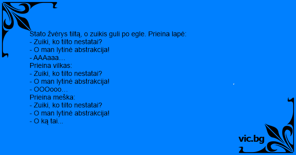 Stato žvėrys tiltą, o zuikis guli po egle. Prieina lapė: