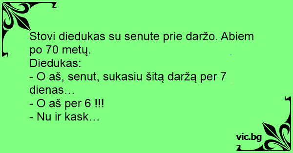 - O aš, senut, sukasiu šitą daržą per 7 dienas…
