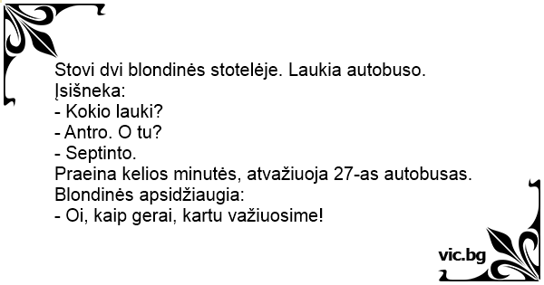 Praeina kelios minutės, atvažiuoja 27-as autobusas. Blondinės apsidžiaugia: