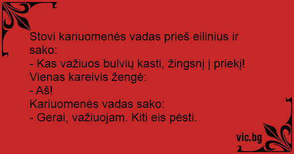 Stovi kariuomenės vadas prieš eilinius ir sako: