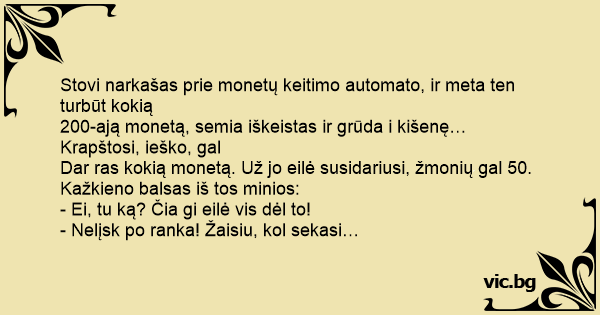 200-ają monetą, semia iškeistas ir grūda i kišenę… Krapštosi, ieško, gal