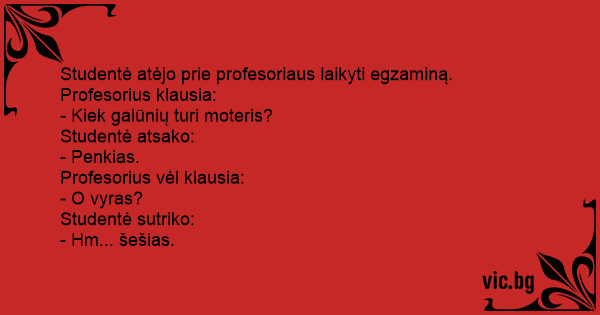 Studentė atėjo prie profesoriaus laikyti egzaminą. Profesorius klausia:
