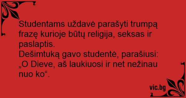 Studentams uždavė parašyti trumpą frazę kurioje būtų religija, seksas ir paslaptis.