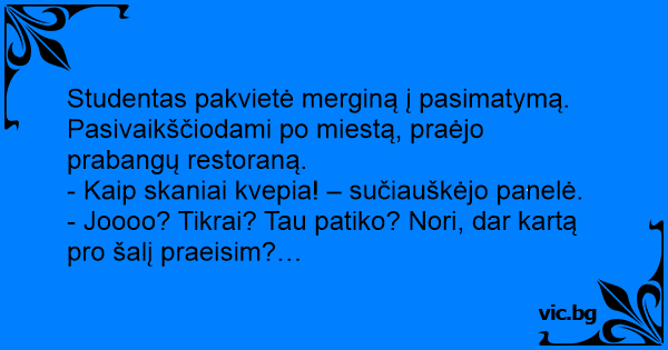 Studentas pakvietė merginą į pasimatymą. Pasivaikščiodami po miestą, praėjo prabangų restoraną.