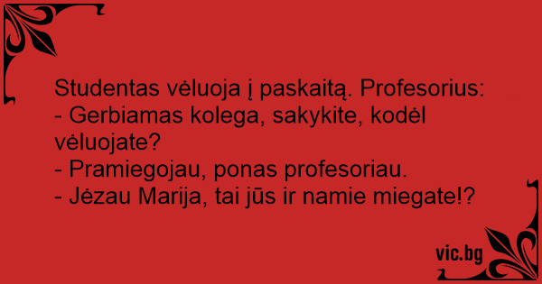 - Gerbiamas kolega, sakykite, kodėl vėluojate?