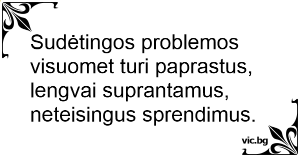 Sudėtingos problemos visuomet turi paprastus, lengvai suprantamus, neteisingus sprendimus.