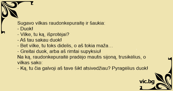 Sugavo vilkas raudonkepuraitę ir šaukia: