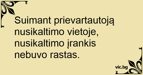 Suimant prievartautoją nusikaltimo vietoje, nusikaltimo įrankis nebuvo rastas.