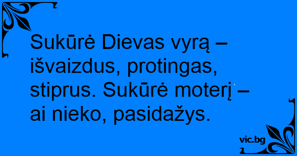 Sukūrė Dievas vyrą – išvaizdus, protingas, stiprus. Sukūrė moterį – ai nieko, pasidažys.