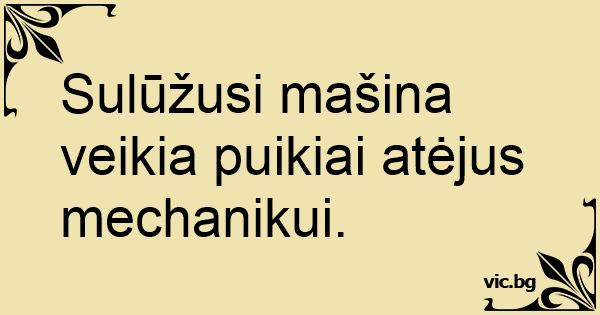 Sulūžusi mašina veikia puikiai atėjus mechanikui.