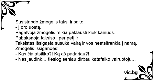 Pagalvoja žmogelis reikia paklausti kiek kainuos. Pabaksnoja taksistui per petį ir
