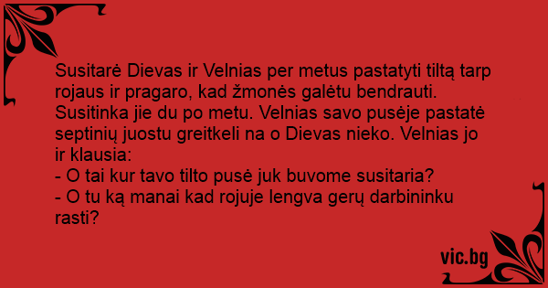 - O tai kur tavo tilto pusė juk buvome susitaria?