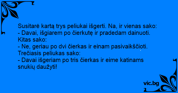 Susitarė kartą trys peliukai išgerti. Na, ir vienas sako: