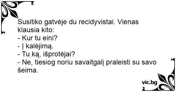 Susitiko gatvėje du recidyvistai. Vienas klausia kito: