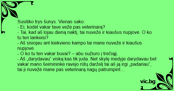 Susitiko trys šunys. Vienas sako: