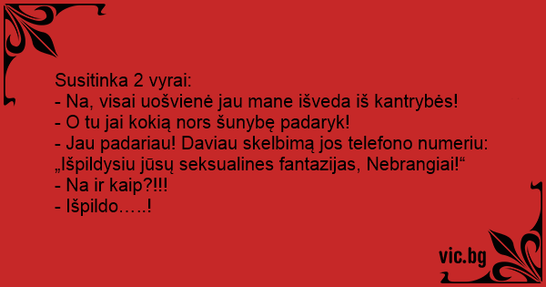 - Jau padariau! Daviau skelbimą jos telefono numeriu: „Išpildysiu jūsų seksualines fantazijas, Nebrangiai!“