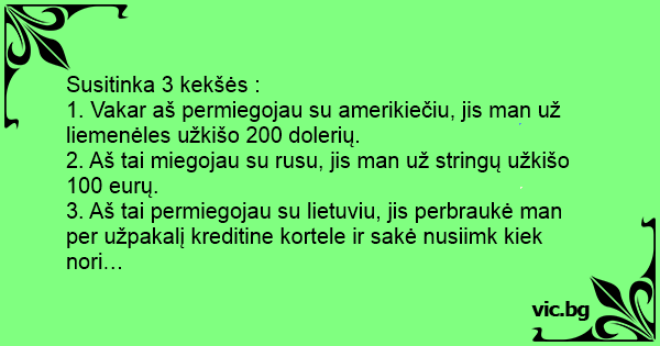 2. Aš tai miegojau su rusu, jis man už stringų užkišo 100 eurų.