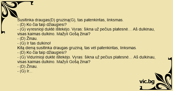 Susitinka draugas(D) gruziną(G), tas patenkintas, linksmas.