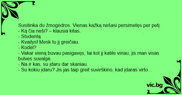 - Vakar vieną buvau pasigavęs, tai kol jį katile viriau, jis man visas bulves suvalgė.