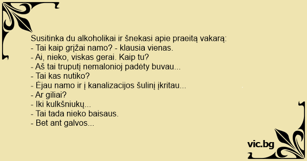 Susitinka du alkoholikai ir šnekasi apie praeitą vakarą: