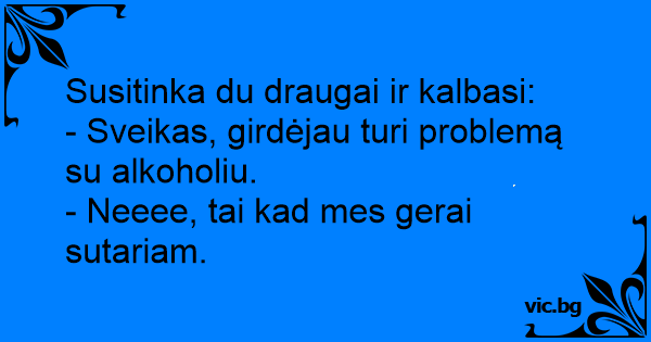 - Sveikas, girdėjau turi problemą su alkoholiu.