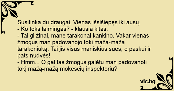 - Hmm... O gal tas žmogus galėtų man padovanoti tokį mažą-mažą mokesčių inspektorių?