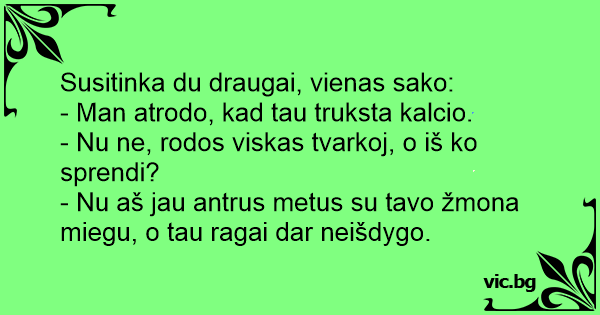 - Nu aš jau antrus metus su tavo žmona miegu, o tau ragai dar neišdygo.