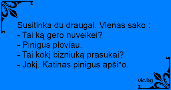 Susitinka du draugai. Vienas sako :