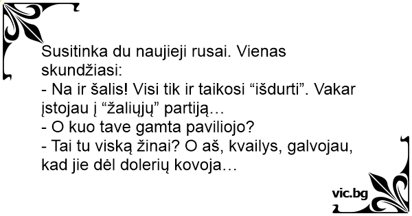 - Tai tu viską žinai? O aš, kvailys, galvojau, kad jie dėl dolerių kovoja…