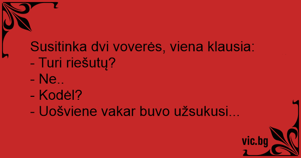 Susitinka dvi voverės, viena klausia: