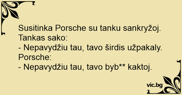 Susitinka Porsche su tanku sankryžoj. Tankas sako: