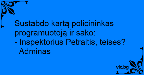 Sustabdo kartą policininkas programuotoją ir sako: