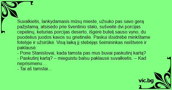 - Paskutinį kartą? – mieguistu balsu paklausė suvalkietis. – Kad neprisimenu…