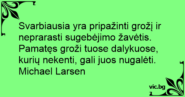 Svarbiausia yra pripažinti grožį ir neprarasti sugebėjimo žavėtis. Pamatęs groži tuose dalykuose, kurių nekenti, gali juos nugalėti. Michael Larsen