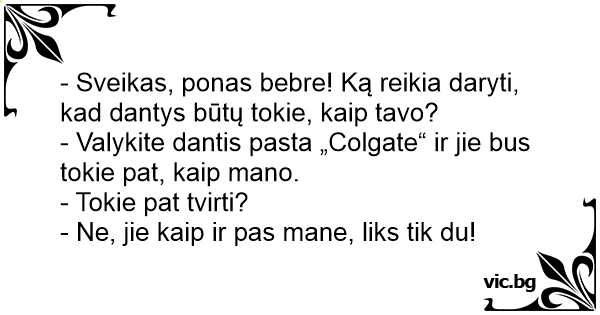 - Valykite dantis pasta „Colgate“ ir jie bus tokie pat, kaip mano.