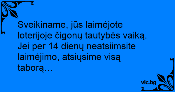 Sveikiname, jūs laimėjote loterijoje čigonų tautybės vaiką. Jei per 14 dienų neatsiimsite laimėjimo, atsiųsime visą taborą…