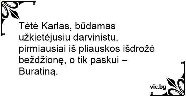 Tėtė Karlas, būdamas užkietėjusiu darvinistu, pirmiausiai iš pliauskos išdrožė beždžionę, o tik paskui – Buratiną.