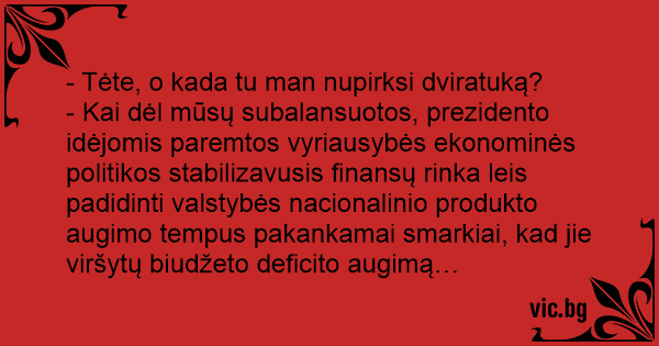 - Kai dėl mūsų subalansuotos, prezidento idėjomis paremtos vyriausybės ekonominės politikos stabilizavusis finansų rinka leis padidinti valstybės nacionalinio produkto augimo tempus pakankamai smarkiai, kad jie viršytų biudžeto deficito augimą…