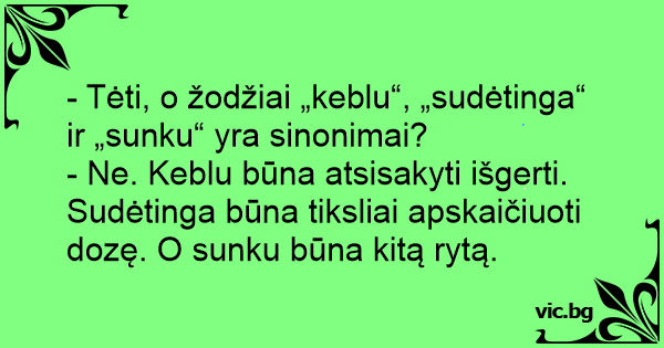 - Tėti, o žodžiai „keblu“, „sudėtinga“ ir „sunku“ yra sinonimai?