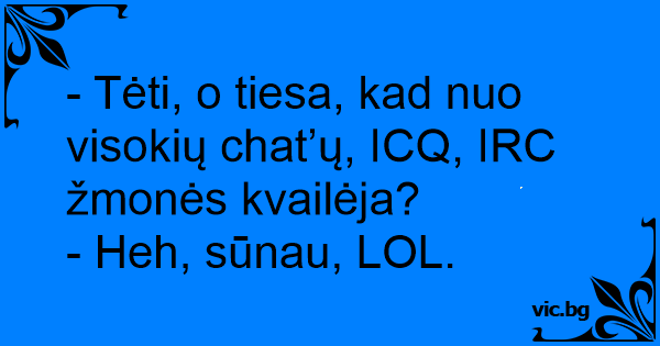 - Tėti, o tiesa, kad nuo visokių chat’ų, ICQ, IRC žmonės kvailėja?