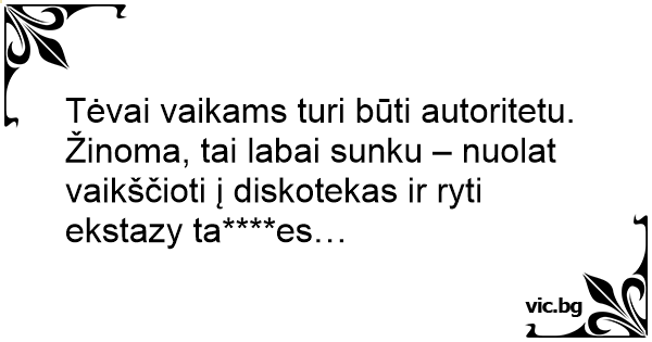 Tėvai vaikams turi būti autoritetu. Žinoma, tai labai sunku – nuolat vaikščioti į diskotekas ir ryti ekstazy ta****es…