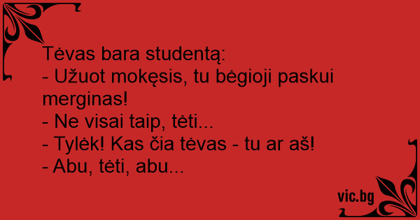 - Tylėk! Kas čia tėvas - tu ar aš!