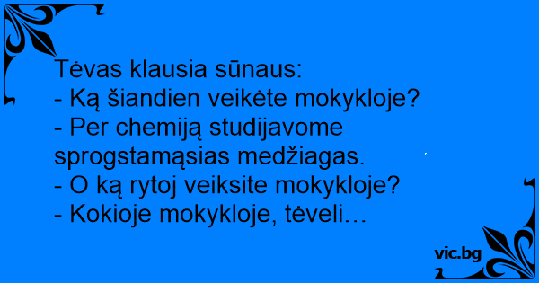 - Ce-ati facut bai azi la scoala? - Materiale explozive. - Marfa. Si miine ce program aveti la scoala? - Care scoala?