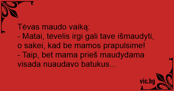 - Matai, tėvelis irgi gali tave išmaudyti, o sakei, kad be mamos prapulsime!