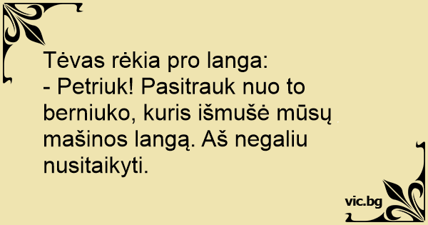 - Petriuk! Pasitrauk nuo to berniuko, kuris išmušė mūsų mašinos langą. Aš negaliu nusitaikyti.