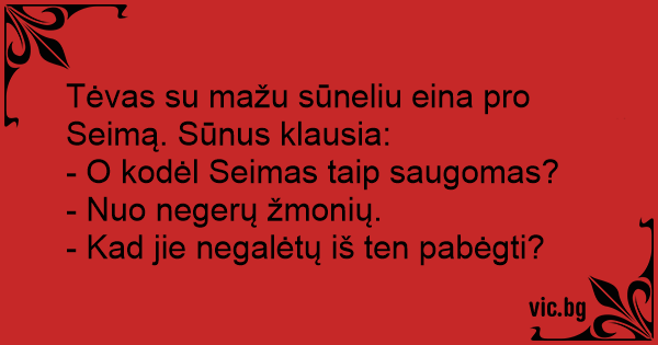 Tėvas su mažu sūneliu eina pro Seimą. Sūnus klausia: